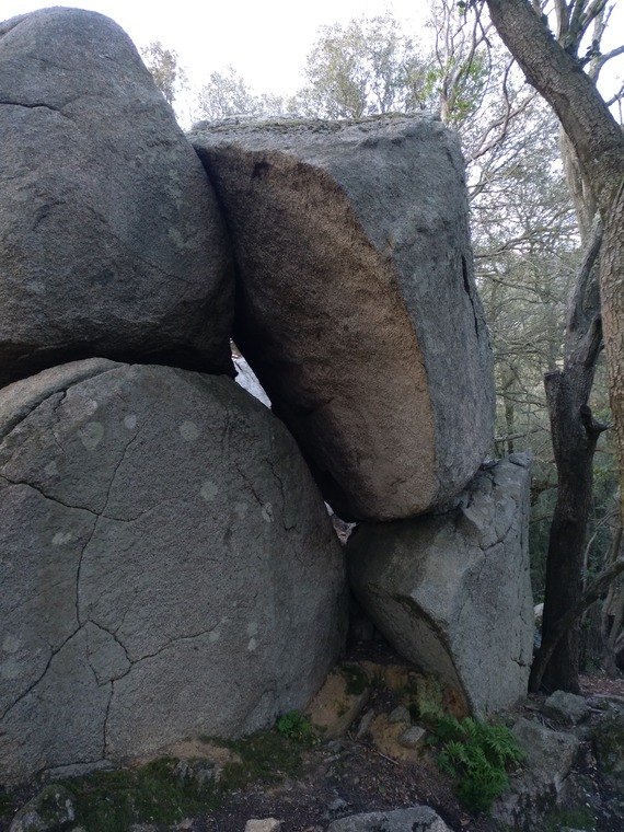 Starting hands in the crack at the left side of the rock.