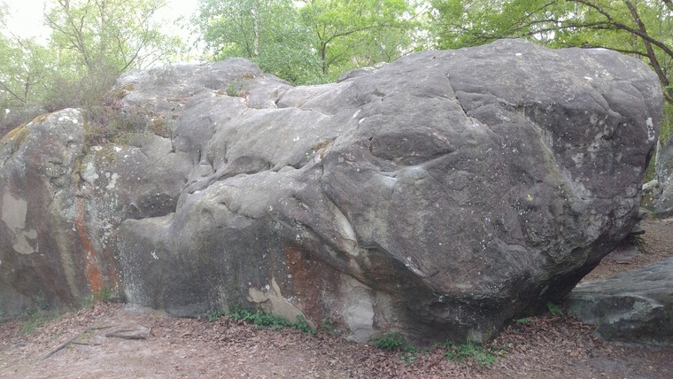 Sit start. Traverse around the entire boulder and topout red 24.