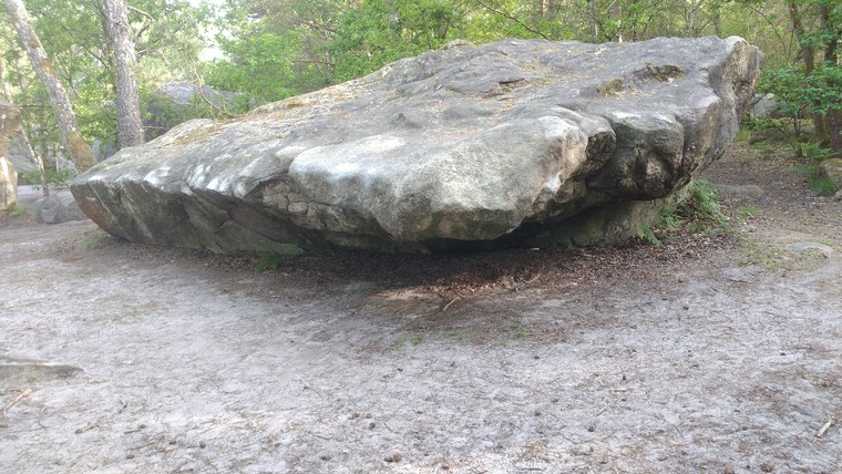 start left at arete. Climb Le grand nez, but instead of manteling return and traverse back to starting point.