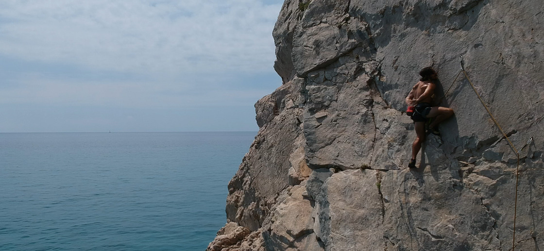 ⛰️NOLITUDE: The rock, different from the one found in other areas of the Finale area, is made up of a particular limestone which makes this place unique and worthy of a visit. It is one of the four cliffs overlooking the open sea between Varigotti and Noli. The access is quite complex, requiring a rappel of about 10 meters and an equipped traverse of about 40 meters. The base of the crag is comfortable, but sometimes narrow, and the bolting, although good overall, requires attention.