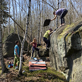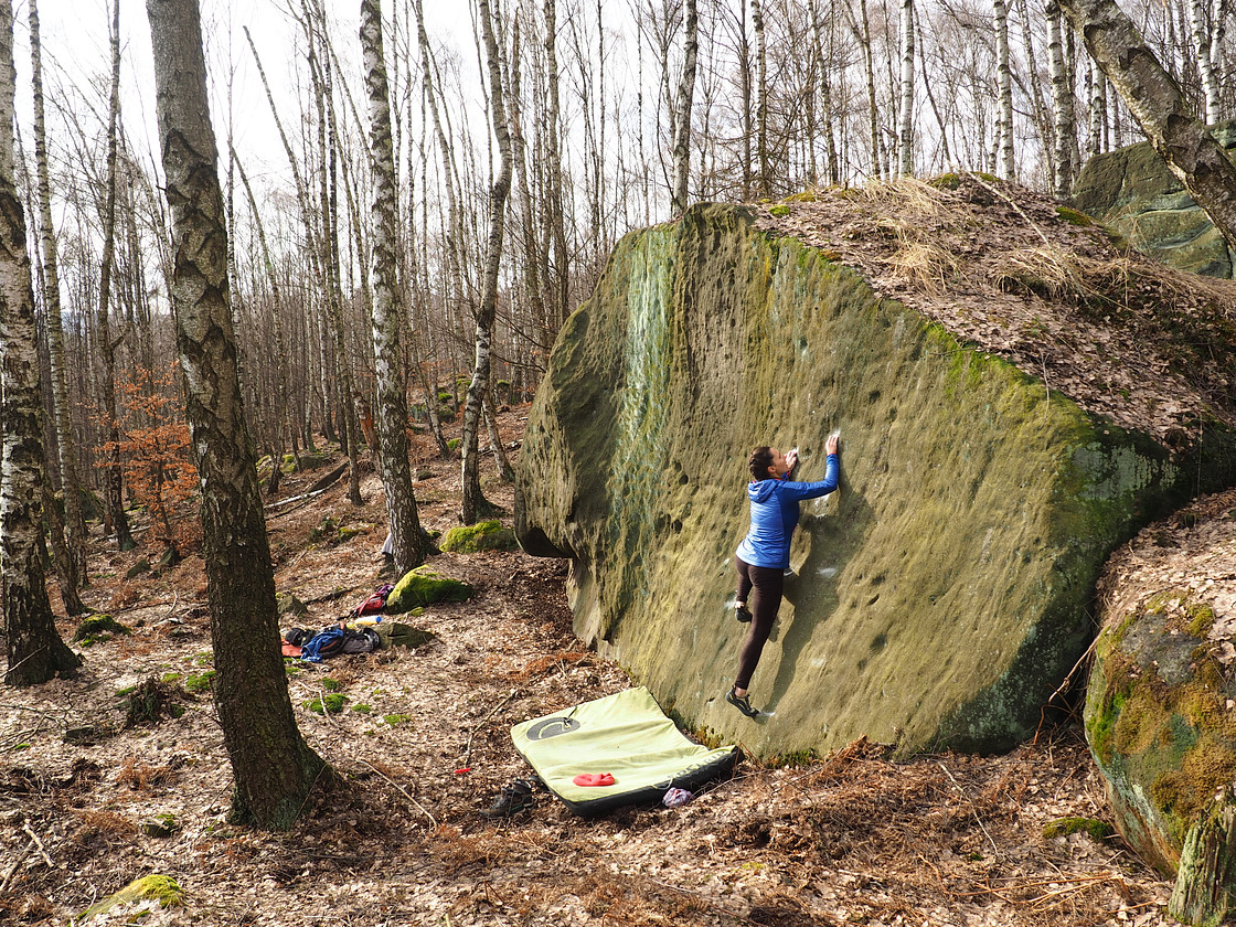 Sector Central South is located in the lower part of the Modřín area. This sector hasn’t been mapped until now, even though it was discovered more than 10 years ago. The sector offers around 50 easy problems in a beautiful flat forest. A creek called Skalní potok, which springs just above the sector, flows right through the center of the place. The sector is suitable for groups with children.