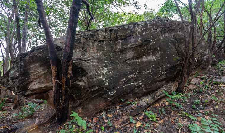 Sit start under the overhang to the left of the tree, then straight up following the crack.