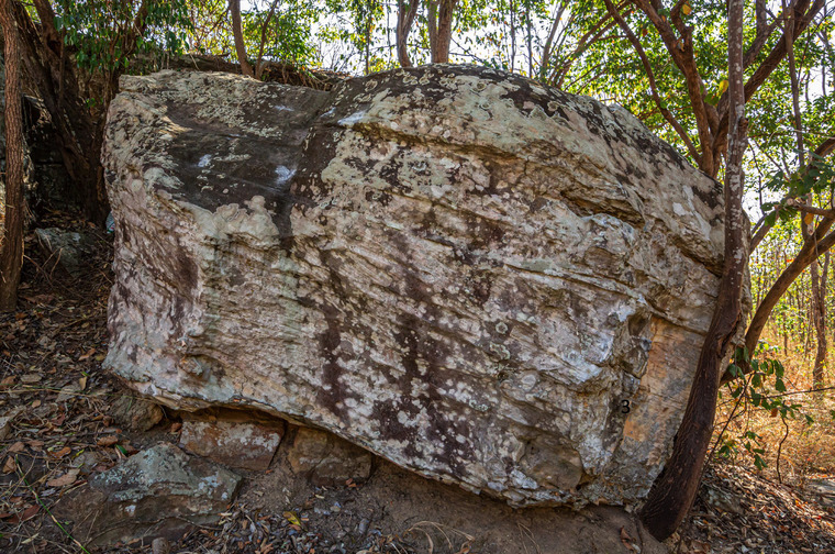 Sit start on the north corner, climb up and exit on the left slopey face