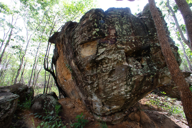Sit start on the right corner. Well pad the boulder at the back, then dyno to uper left to a small ledge and continue left and up