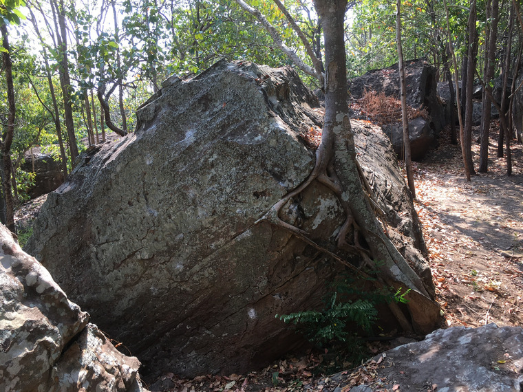 Located on end of long boulder opposite Lion king and Fauna tropical. Sit start, straight up.