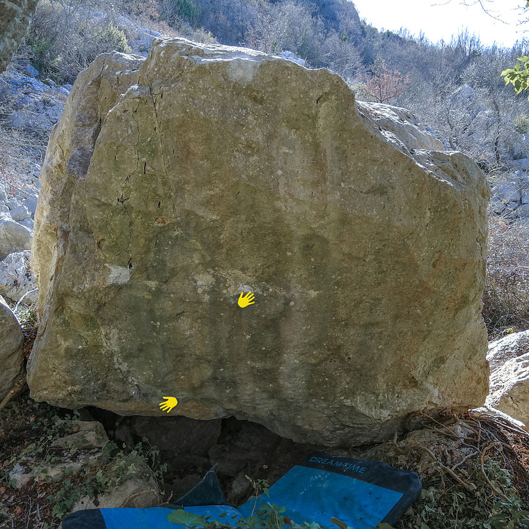 partenza da tacca evidente tacca buona di dx e rovescia mano sx, allungo al bordo e poi lancio al top