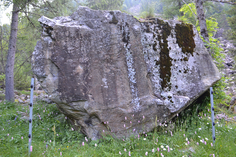 a slightly overhanging line with crimps on the left side of the boulder