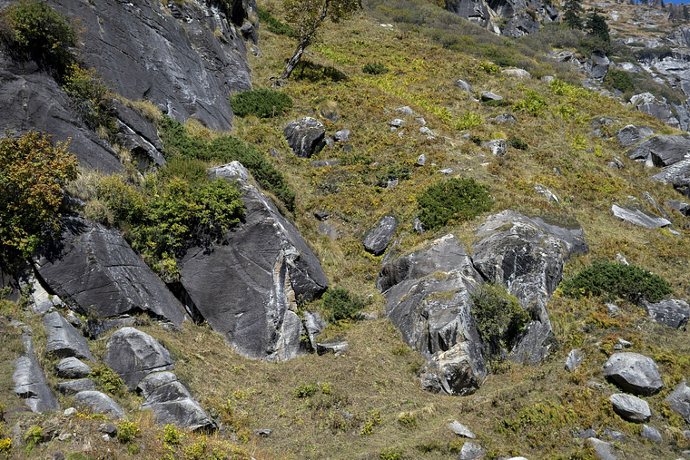 Follows the arete of this high ball boulder placed beautifully to the right of the waterfall crag. The crux is the exit on the slab from overhang. No of Bolts: 6 + 2