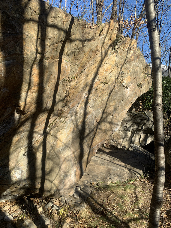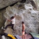 Sit start from left edge and crimp under the roof. Exit on this side of the boulder.