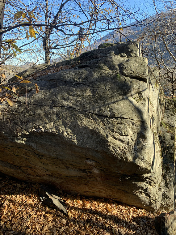 Hard si start from the obvious holds. Then traverse on the right and mantle.