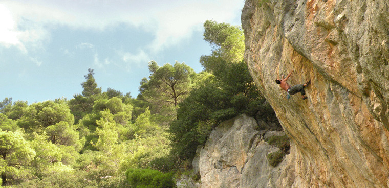 The short cliff of Chouni on the entrance of the Chouni gorge on Mt Parnitha is a landmark of Athens modern sport climbing history as the hotspot of hard ascents during late 90s. Today, the crag remains relevant for sport climbing in the range of 7a to 7c with many super classic lines. The crag is beautifully located on the outskirts of Parnitha National Park surrounded by a thick pine forest near the bed of the Chouni river.