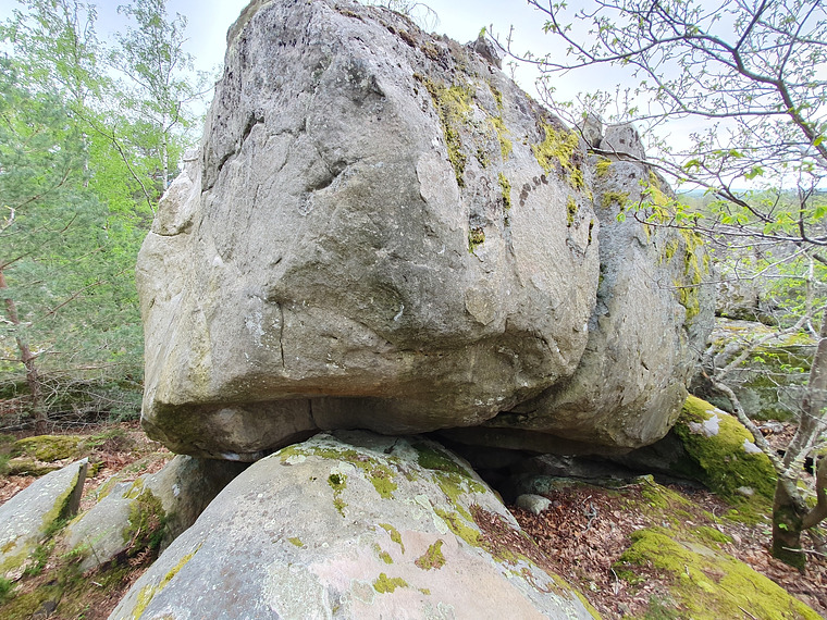 Sit start between rocks, finish slightly right