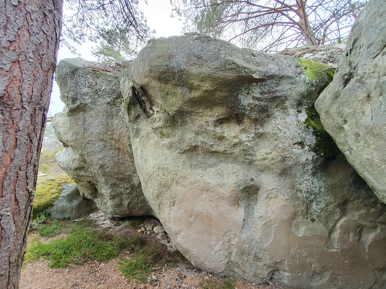 Stand start, finish right almost above the other rock