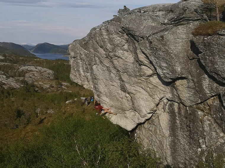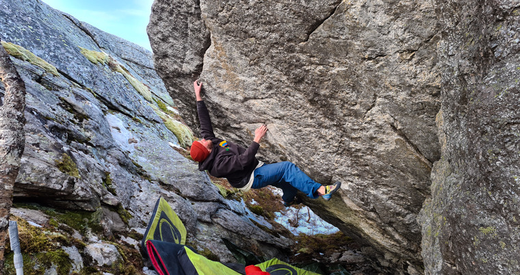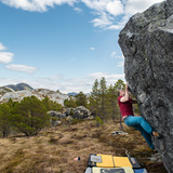 Roumor has it that Torgier Kjus knew about the blocks here already around 2000 but aparrently nothing was developed at that point. The first known development started in 2008 by Geir Ove Amundsen who went there on several trip over the following two years but he didn't document anything so which lines he actually put up at that time is a bit hazy. It was then quiet for several years until Sten Stenkjær heard of the possibilities and put up several new lines during the years of 2015-16 including the classic Blockbuster. The next boom in development came in 2018-2020 when Rasmus Bølling went there on several solo trips to ducument what had been done so far and also to establish several new boulder problems including the Bodø classic 'Endelig Elg' and several harder lines. Crag X quickly bacame one of the go-to spots for an evening or weekend session and remains so today with several must do test pieces of all grades. During 2020 the steep clifs of Ravnfloget looming above the boulders also saw development after Rasmus had pushed Andreas Grumstad and Ole Dovland for a few years to go and chceck it out until they finally did. ANd many hard sports routes was quickly established, including Bodø's hardest sports route that ticks in around 8b+. So don't foget to bring your harnes and rope aswell as pads.