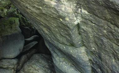 From the parking, cross the road and head down the paved driveway to the tracks. This road/building are associated with the tracks, so be discreet. Walk downstream (that's to your left. Don't pass under the bridge) parallel the tracks. The Lorax trail is marked by a cairn; this trail is primarily to access the Lorax as it sits halfway up the cliff side. If you are going to ANY other boulder it is easier to continue downstream until you can find the steep, loose but open scramble to the river. This will overgrow every summer, there is no well established trail to the river. Good luck. The trail is mainly flat, uneven gravel. The trail down the hill to river level is non-existant, so you'll have to routefind a way down the steep hill. Once you reach river level, the walking is adventurous with rock hopping, scrambling, and routefinding. Total hiking time: 30-45 minutes.