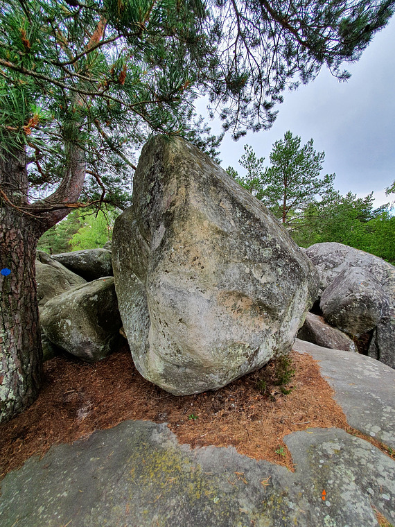 sit start with left round arete. Finish right on slab.