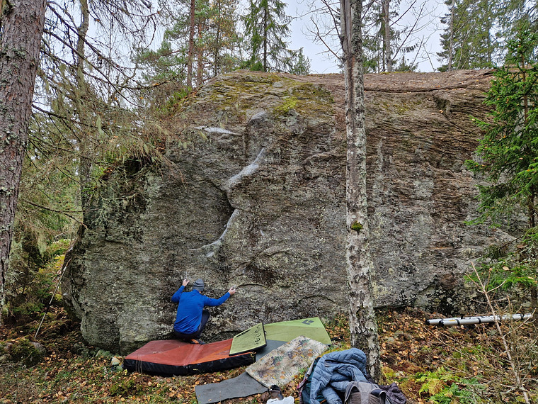 Toppa ut vänster på mantlingshyllan och undvik det lösa crimpflaket till höger.