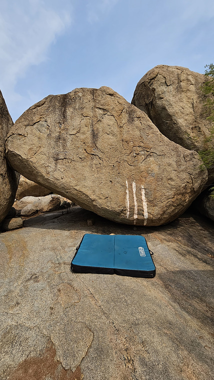 A flake that chipped & almost cracked Rishi's forehead during one of the attempts. Avoid barn door at the top out.