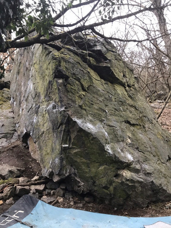 Ve spodni casti kamene,ze sedu z dvou oznacenych chytu (jako Captain A.) a mirne do prava do vylezu. Sitstart from two marked holds (same start Captain .A) and rigth up