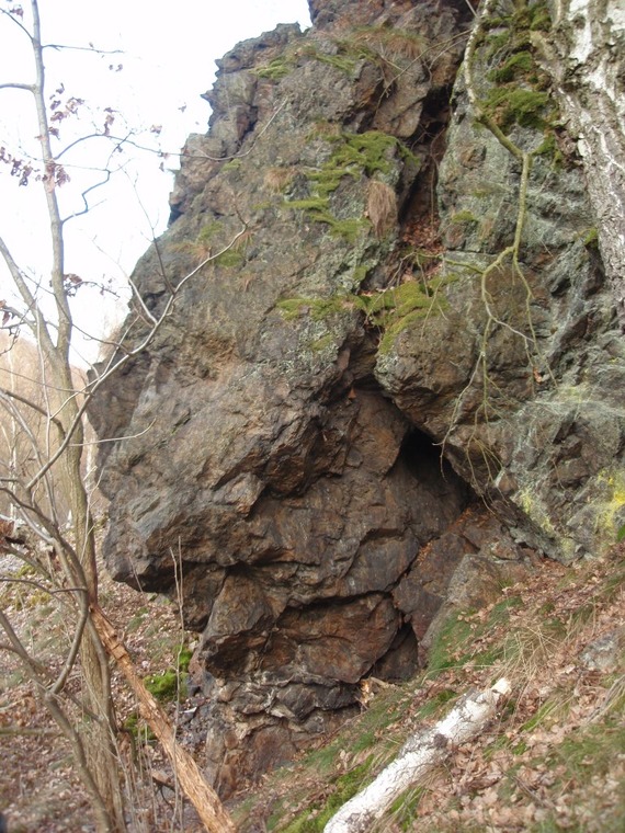 Ze sedu pod pilířem start na šipce nejvíc vpravo, ruce pod šipkou. Pak šikmo doleva do stěnky a tou na vrchol. Bez levé hrany a odstávajícího bloku vpravo a dalších předskalí.