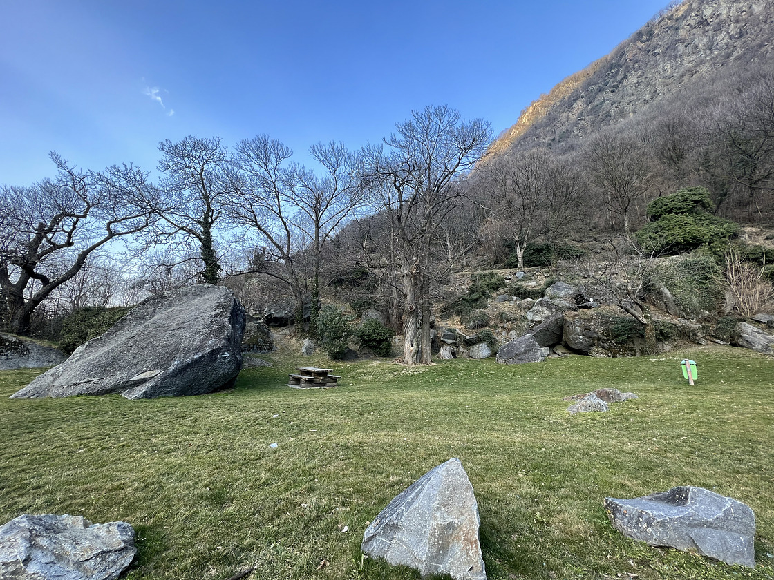 Dorénaz "Parking Télé" is one of the best bouldering area for family and beginners. In a really compact area you can find more than 30 boulder problems in easy-moderate grades with less than 3 min walk.