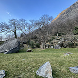 The terrain is flat and you even have pic-nic table ready to use. This area is really exposed to the sun which make a perfection area for winter bouldering. It's definitely too warm in summer but it can always bit a nice place to sunbath and enjoy some "easy" climbing.