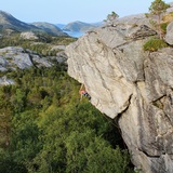 The wall has always been there to see, watching over the boulderers at Crag-X. Nothing had been done until spring of 2020 when the wall was "opened" by Ole and Andreas, sending Vidvandre and #lvl60, followed by The Push from Olav Evjen. The bolting began with several anchors and Norbert, probably the finest on the entire wall, and one of the best of the grade in Bodø. The entire crag was bolted during Covid-19 year of 2020, yet there are some lines in between that might hold some potential still.