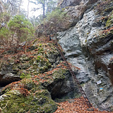 Dieser kleine, aber feine Block liegt unfern des Dürnbacher Wasserfalls und ist fast nordseitig ausgerichtet. Durch die Nähe zum Wasser und den dichten Efeu bleibt auch dieser Block nach Regenfällen eher länger feucht. Das Absprunggelände ist sehr gut, und ein kleines Crashpad reicht vollkommen aus.