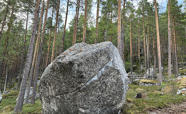 Stora block utspridda med varierande typer av sten. Perfekt att ta med stålborste och utveckla nya linjer.