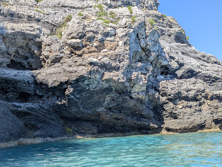 Starts to the right of the overhang where there is a ledge, follow the jugs to the top passing the bid round stone sticking out of the wall