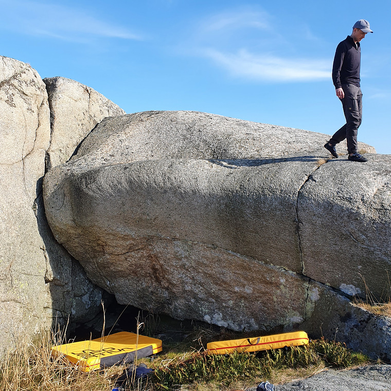 Sitstart with you butt on the rock island in the corner.