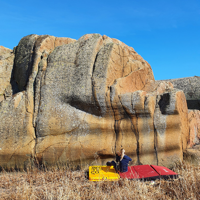 Sit start. Hands follows the left crack.