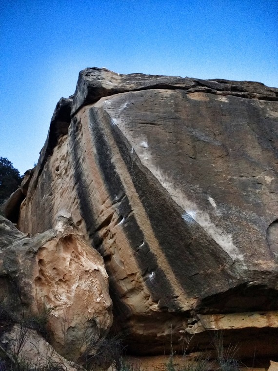 The King Line in this area. Missed the First Ascent, got the Second Ascent instead. Dyno'ed from a left heel-toecam to the finishing jug.