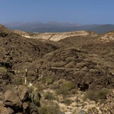 From heavy roof over crimpy slab to easy boulders.