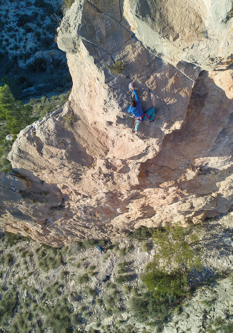 Located in the foothills of the Sierra del Maigmó, this small but fanatic crag offers almost thirty routes located on both sides of a short and narrow canyon where a surprising variety of climbing styles coexist. The average height of its routes does not reach 20 meters and both in its technical vertical walls and in its explosive overhangs, you will always find very demanding routes. It should be noted that, although its footpath is one of the most uncomfortable and unstable in the entire province, it has several gems that are authentic references within the region of L’Alacantí.