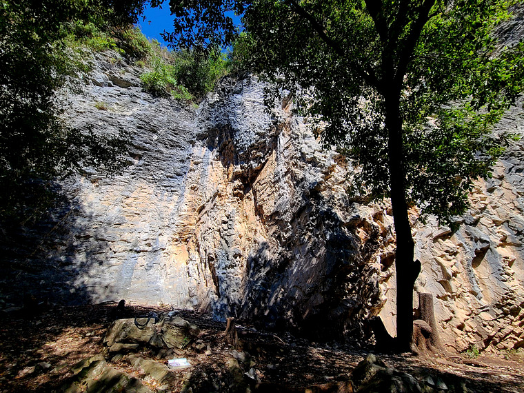 Starts on vertical wall. Technical climb.