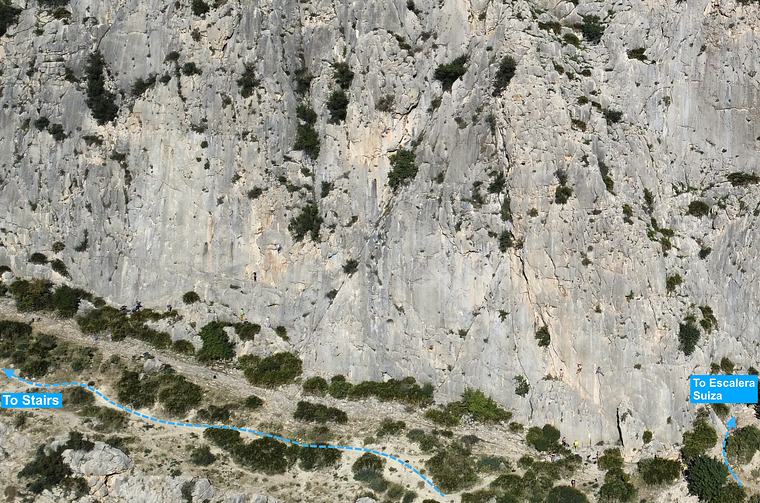 Nice sustained wall climbing. The grade is closer to 6a.