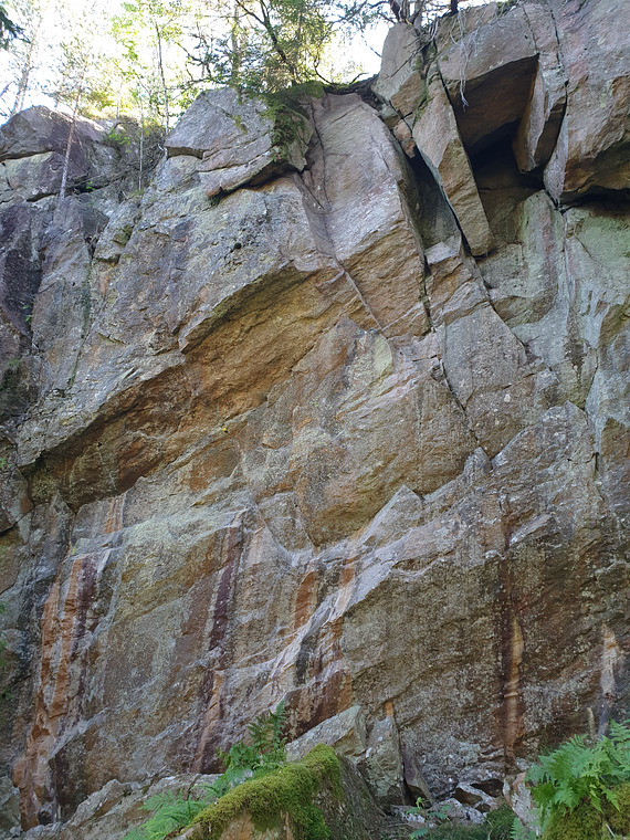 Cruxy and beautiful. Probably the best route in the crag. Avoid using the big block to the left in the end.