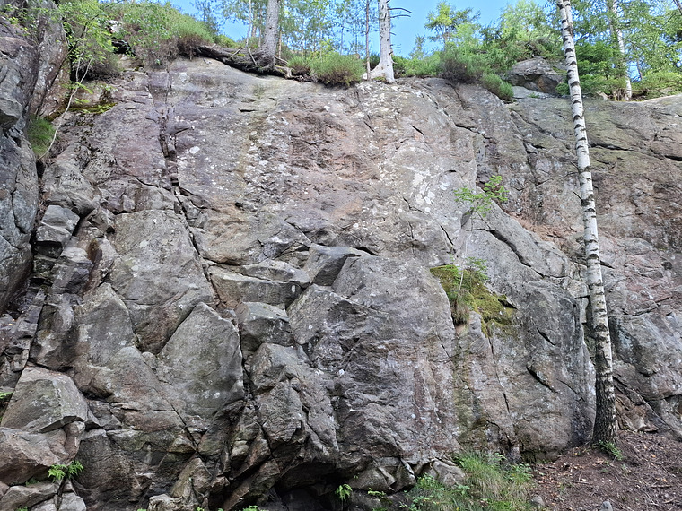 An obvious choice for the beginner. Big holds, although not completely straightforward all the way. A variation is possible to the right in the end using the hanger between the two routes.