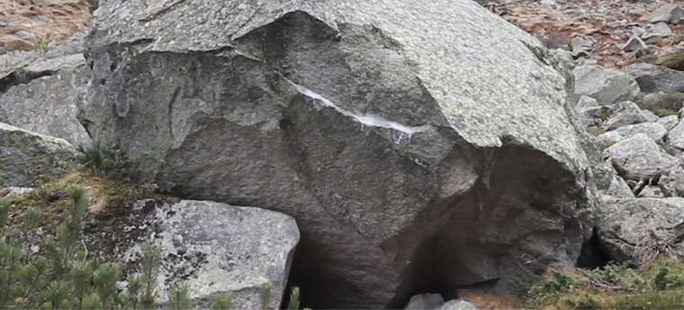 Block 19. Sd mit Seitleiste links und Untergriff rechts. Standort des Boulders unbekannt.