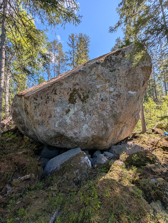 Ståstart vid hyllan. Följ den tydliga jugghyllan under kanten. Toppa som "Heloson".