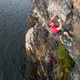 Drive Värmdöleden (222) towards Gustavsberg. Turn off towards Ingarö (646). After 2 km you pass a bridge, turn right immediately after the bridge and follow Lillängsdalsvägen for about 4 km. Park at the intersection Lillängdalsvägen / Dundervägen next to an electric house. Please note that there is only room for 3 cars here. If it is full, you MUST go back 4 km and park at the parking lot at Bergviksvägen. Then follow Dundervägen to its end. The path that takes at divides immediately, take left. The path immediately divides again, take left again. After about 100 meters follow the path to the right (from here there are green dots leading all the way down to Sjöklippan). After 200 m the path divides, turn left. After 50 m you start to approach the water and the rocks. Continue another 30-50 m along the path. Turn to left towards the water via a sloping slope and "open street" in the terrain (there is usually a small cairn (röse) to the right of the path that indicates where to turn towards the water). If you depart too early from the path, you will end up among cabins by the water. it's absolutely forbidden to go this way or along the coast to the crag. If you go wrong, back away, it has turned out that there are very aggressive homeowners here. Through different "floors", you will reach down to the water. At one passage keep right near the wall to avoid sliding down into the loose gravel, at another passage you hold a narrow tree and make an easier down climb (2 meters). The cliff is 50 m to the right when you have reached all the way down to the water.