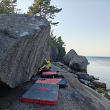 Fiskö island is a true gem in the middle of the archipelago sea. It lies couple of kilometers away from Hyppeis/ Houtskär where you can also arrive with your car. North west end of Fiskö has plenty of good quality boulders next to each others. Also good spot for having a camp and a sandbeach to swim. Some of the boulders are normal/small while few of them are huge. All boulders were opened with 3 big pads.