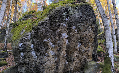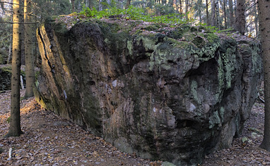 From the small parking area, follow the road uphill and keep left. After the last house, the road turns into a forest track. At the first forest junction—just below the boulder problem Flatland—turn right to reach the rest of the blocs.Please do not park near the houses at the top.