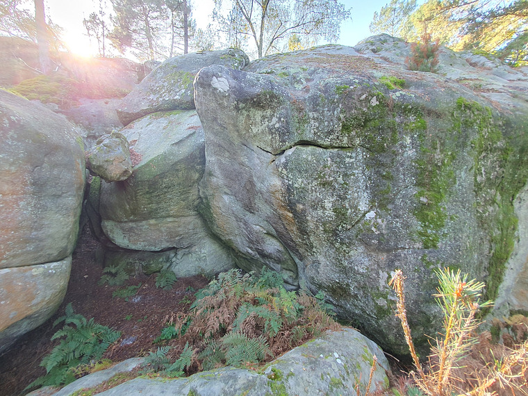 Stand start from undercling right hand. With the help of a hook in the crack to the right and topout using the jammed rock.