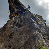 Equipment: a climbing rope of at least 30 meters. 6 quickdraws, a sling and 2 carabiners for the top anchor.
