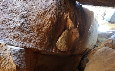 Park to the Pass parking. Take the sandy road, walk it for about 800 meters, take a turn at the cairns to the right. Walk this path for 400 meters, take a path to the left (up to the fortress). Walk uphill along a cairned path for another 500 meters and you'll arrive to the Fortress Boulder.