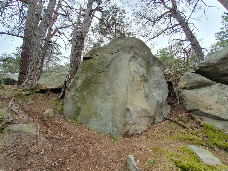 Start from left side. Top out on the centre top of rock