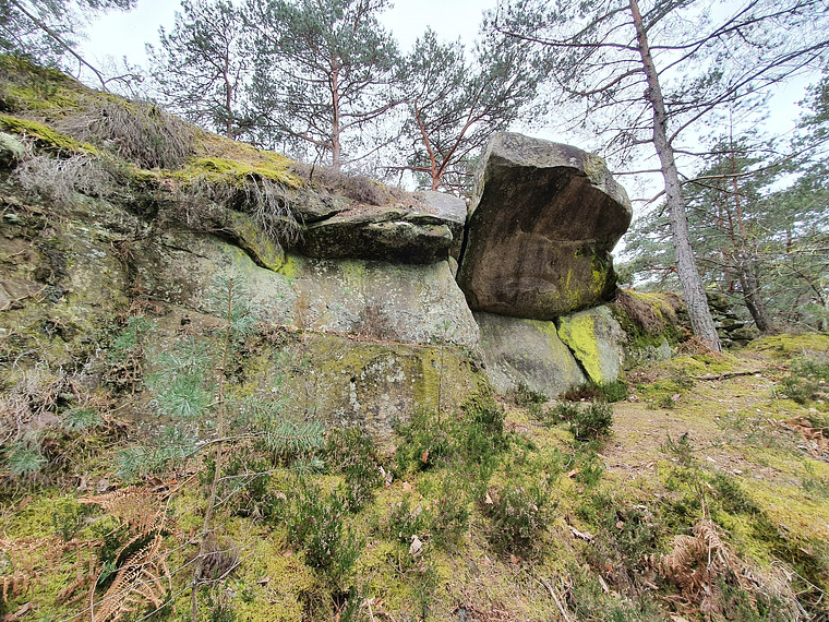 Nice jump where you have to do a blind jump to the top edge. Problem can be found on blue path near boulder with blue D painted on it.