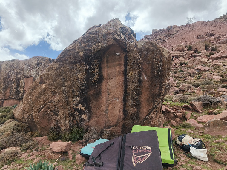 Stand start using left hand tiny pocket, right hand side pull rail. Powerful latch to crimp and exit straight.